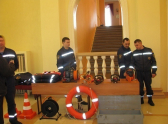 На площадке около школы выставили основные модели пожарной и спасательной техники волгодонского гарнизона и спасательной службы города. Случайные прохожие могли увидеть, в том числе и самую высокую пожарную лестницу в городе АКП-50, которая позволяет проводить спасательные работы в зданиях высотой до 50 метров. В городе всего две такие машины: одна находится на постоянном дежурстве в пожарной части, а другая находится в учебном центре. Также на выставке была представлена и специализированная мобильная лаборатория радиационной разведки. В фойе Детской театральной школы разместилась небольшая экспозиция пожарного оборудования и обмундирования: спецодежда, дыхательные аппараты и тому подобное.