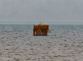 Странные шалаши и сторожевые башни на воде были обнаружены при понижении уровня Цимлянского водохранилища в Волгодонске