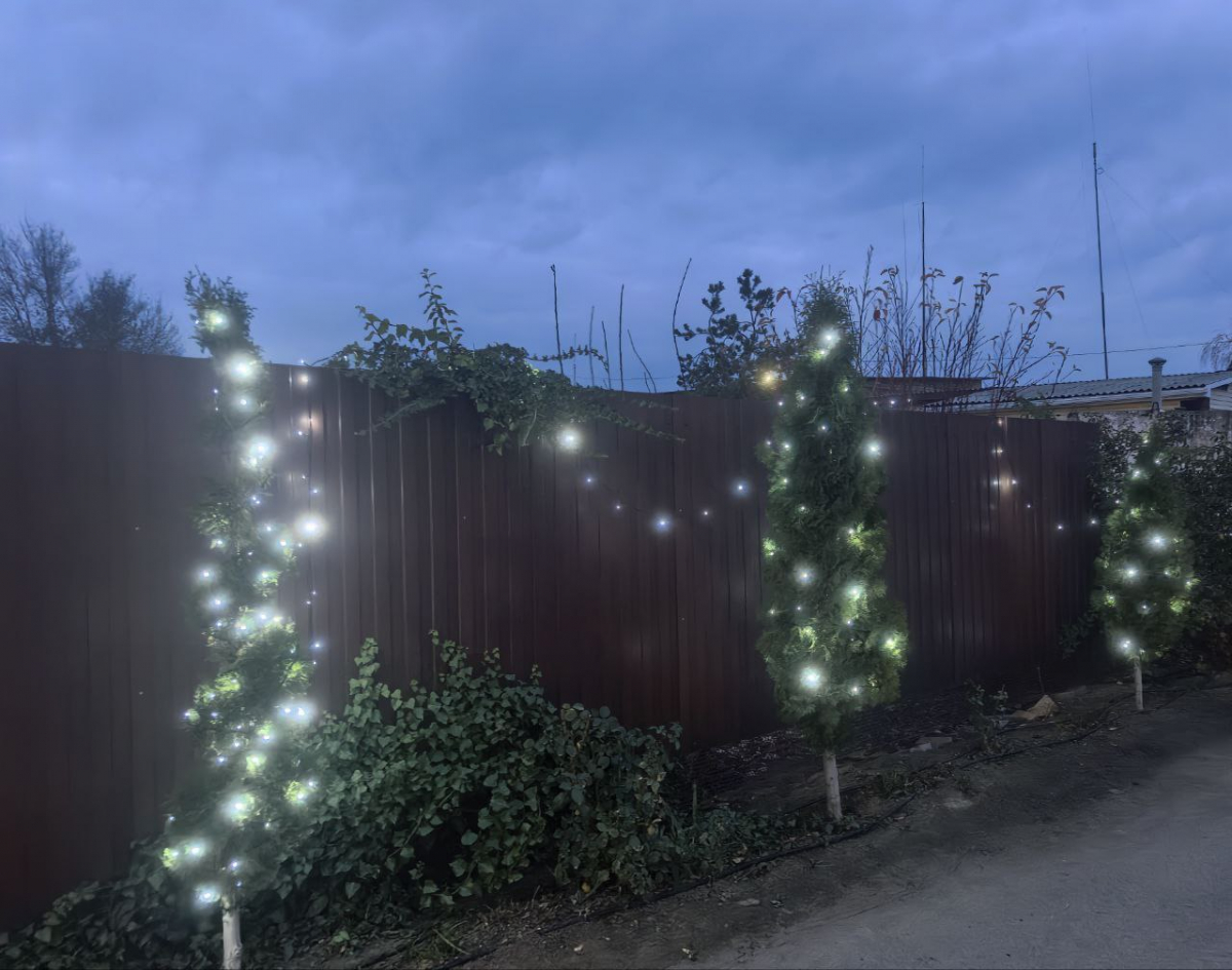 Хозяева перед своим домом нарядили деревья гирляндами, стараясь украсить участок и подарить прохожим немного праздничного настроения. Однако их усилия оказались напрасными. По словам станичницы, местные юноши не оценили красоту новогоднего убранства и порвали гирлянды.