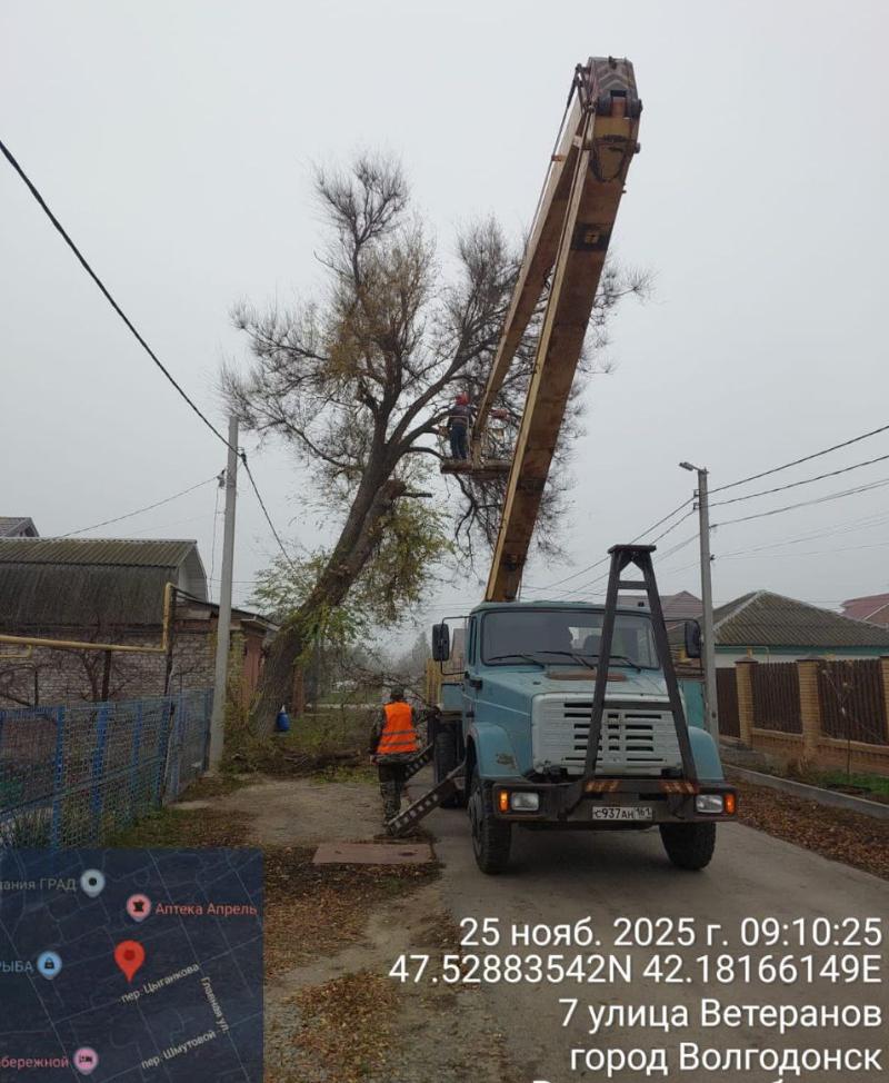 Во вторник внимание коммунальных служб было сосредоточено на обеспечении безопасности горожан. На улице Ветеранов было спилено аварийно-опасное дерево, угрожавшее прохожим и припаркованным автомобилям.