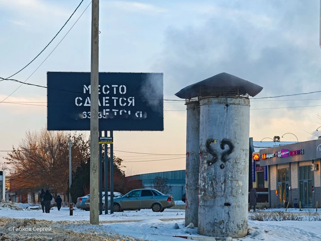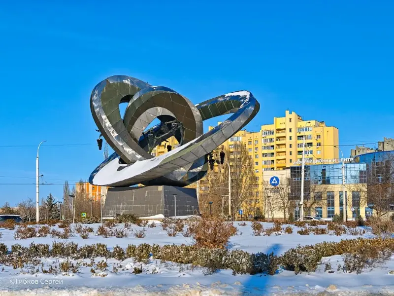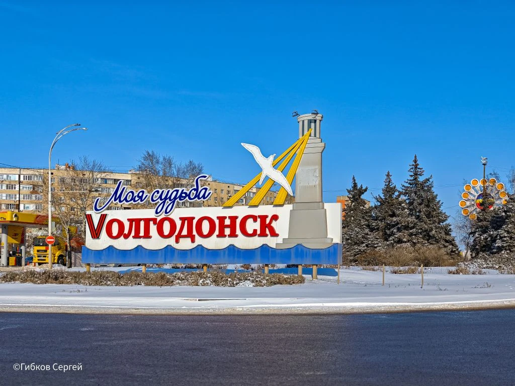Въезд в новую часть города с знаком «Волгодонск – моя судьба!». Зимой он особенно яркий – вокруг всё серо-коричневое, а он яркий и веселый, как приветствие.