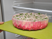 За долгие годы было придумано много вариаций салата. Мы нашли очень интересный – в виде торта. А быть ему таким позволяет соус из майонеза и желатина, который скрепляет слои и даже делает возможным его нарезать. Представляете у себя на тарелке ломтик селедки под шубой? Это красиво, оригинально и по-настоящему празднично, а еще не течет и выглядит весьма эстетично.
