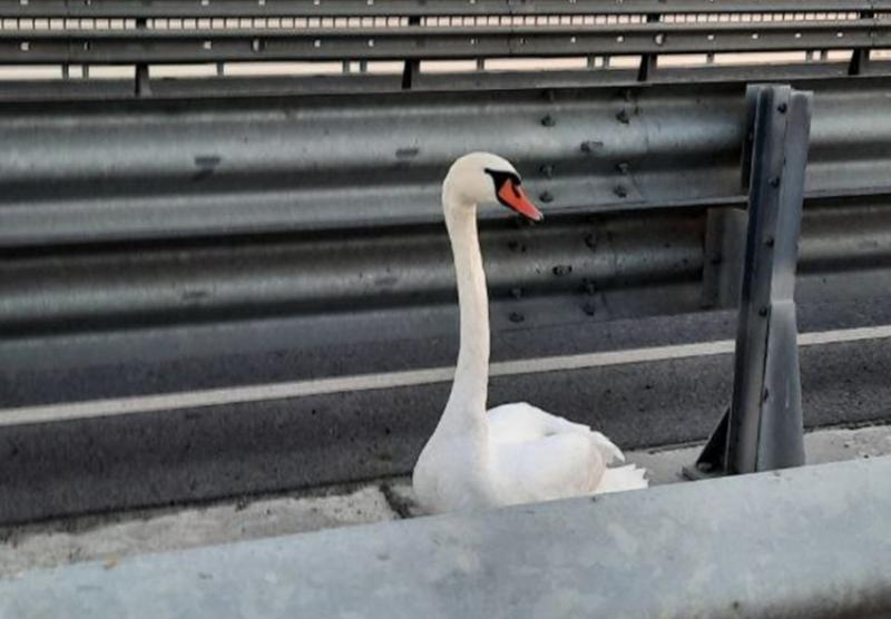 Спасенный на мосту лебедь
