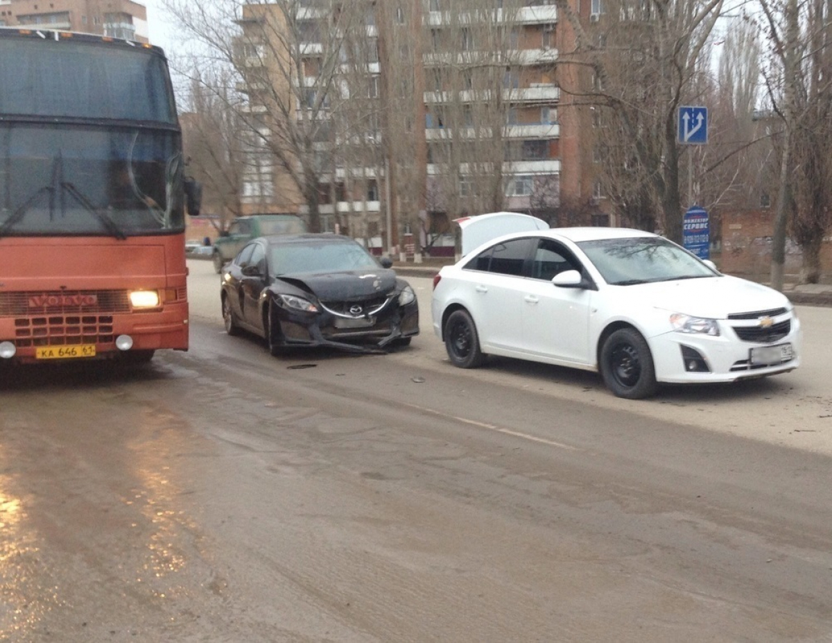 Тройное ДТП в Волгодонске — водитель «Мазды» не заметил притормозившие автомобили
