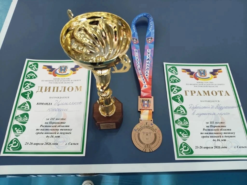Юные спортсмены из Цимлянска впервые в истории города стали бронзовыми призёрами Первенства Ростовской области по настольному теннису среди юношей до 16 лет. Третье место в командном зачёте и бронза в парном разряде – отличный результат для небольшого города.
