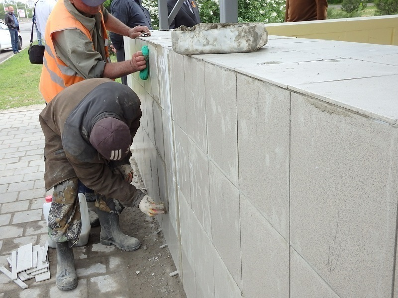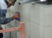 – Есть вопросы по обрезке уложенной плитки, обработке швов на облицовке, по мусору.