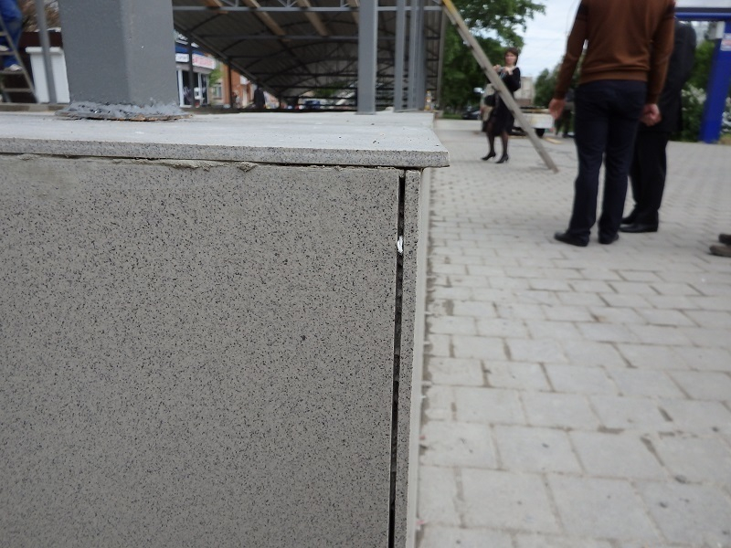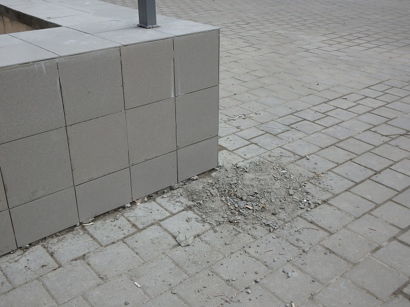 А вот сколько продержится облицовочная плитка – вопрос. В некоторых местах она потрескалась уже при укладке.