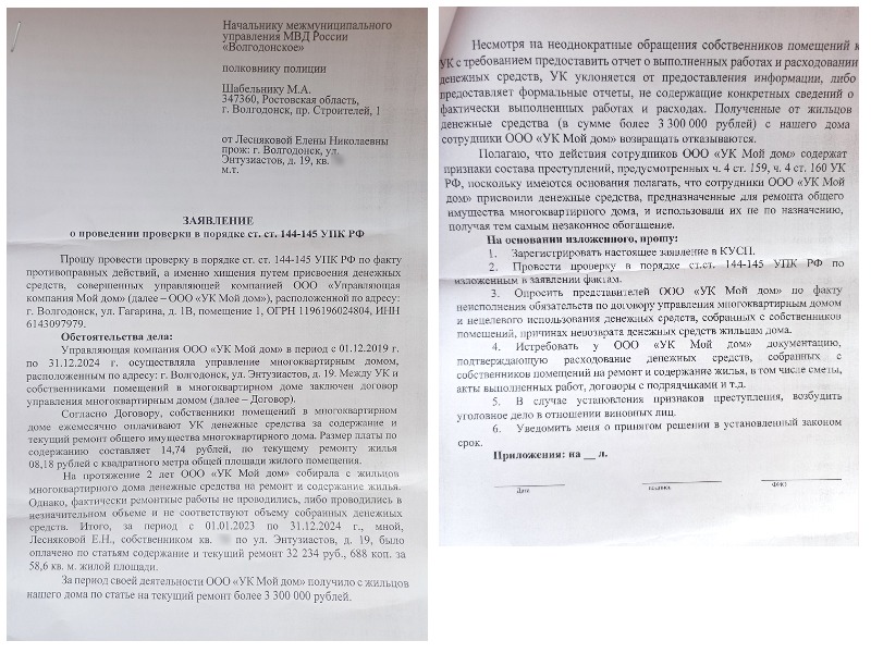 Собственники через прокуратуру пытались получить ответ: на что были потрачены их деньги, предназначенные на текущий ремонт? Так, за время своей «работы» «УК Мой Дом» получил более 3,3 млн рублей на текущий ремонт с дома №19 и более 2 млн рублей с дома №16. Внятного ответа на эти вопросы так и не последовало, а дома перешли к новой управляющей компании с нулевым балансом на счету – то есть, деньги просто пропали в неизвестном направлении, а собственники остались и без денег, и без ремонтов. Конечно, за несколько лет какие-то незначительные работы вроде смены кранов в подвале проводились, но их стоимость и близко не может исчисляться миллионами рублей.