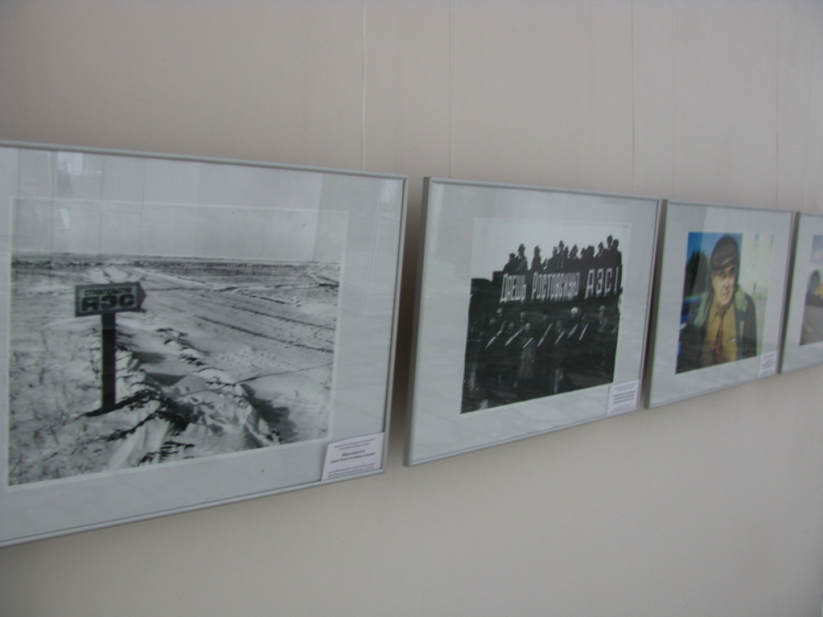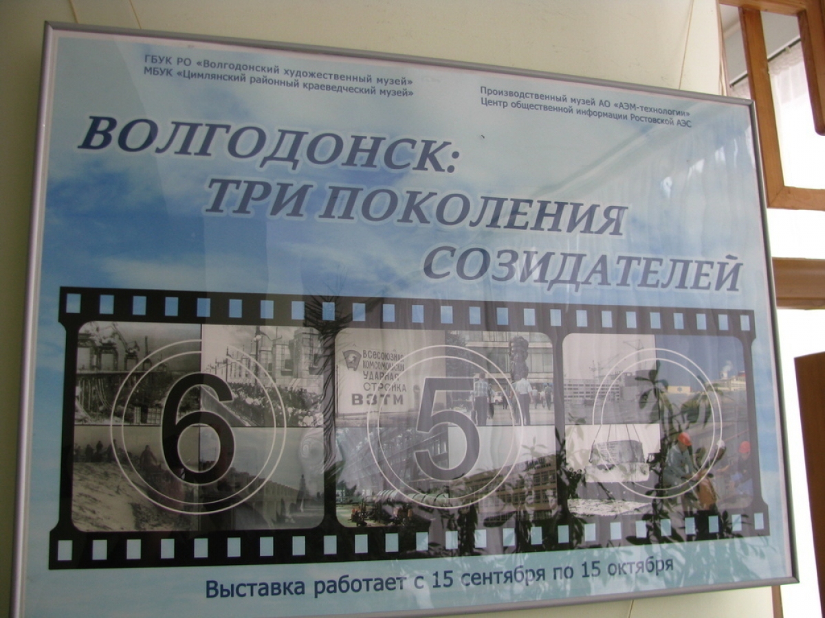 При создании экспозиции выставки, помимо фондов художественного музея, были использованы документы и материалы Цимлянского краеведческого музея, Центра общественной информации Ростовской АЭС и ведомственного музея «Атоммаша». История города отражена в картинах и фотографиях Александра Неумывакина, Бориса Гейне, Юрия Падалки и других фотографов и художников. Цимлянский краеведческий музей предоставил коллекцию копий фотографий Ивана Болдырева, запечатлевших жизнь станицы Цимлянская и близлежащих хуторов в 70-е годы 19 столетия.