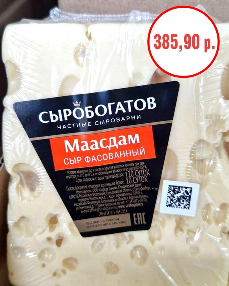 8. Сыр «Маасдам» - 385,90рублей/кг;
