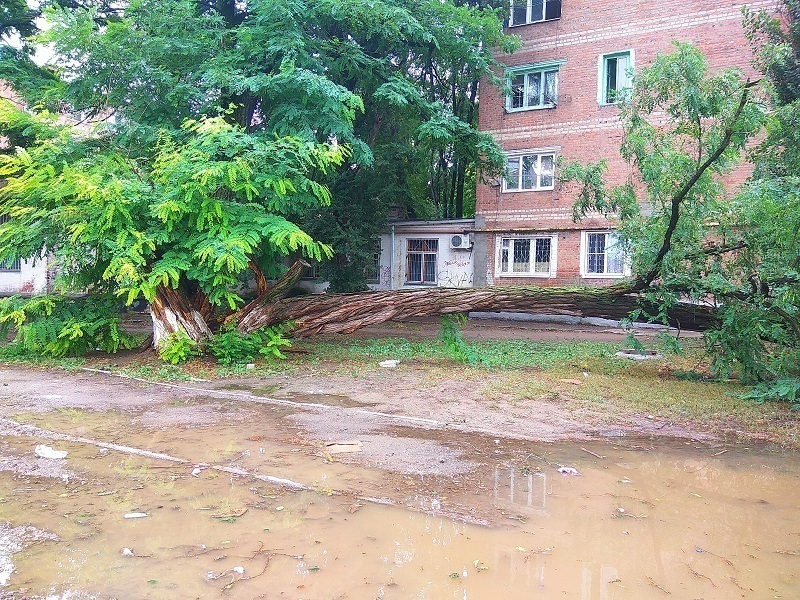 В одном из дворов Волгодонска во время дождя рухнуло большое дерево
