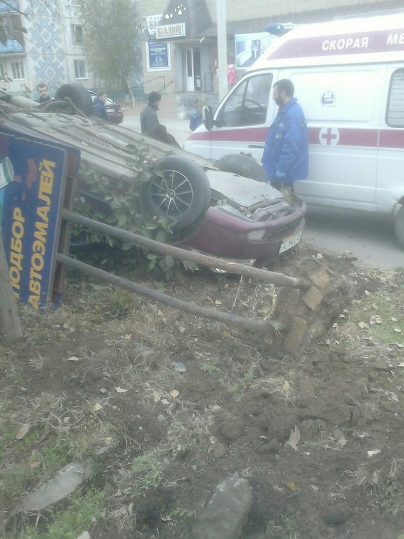 В Волгодонске на улице Горького перевернулся «Хундай»