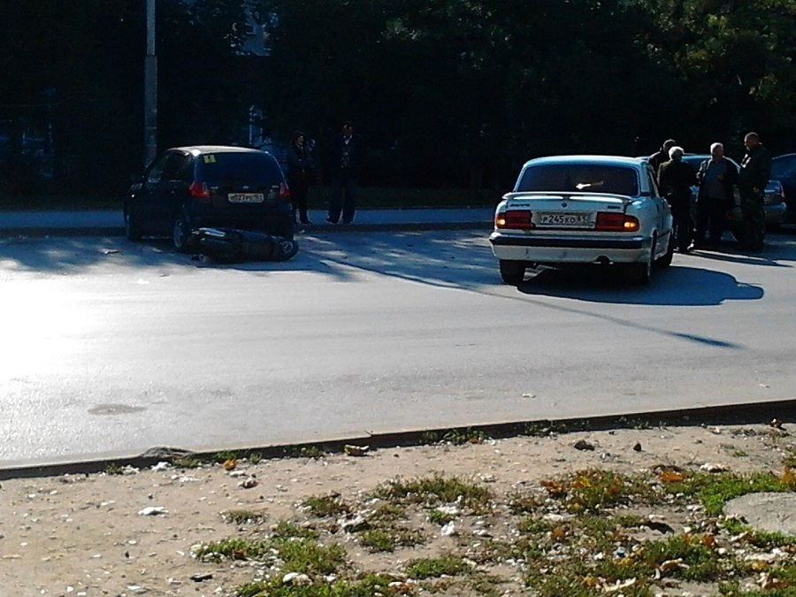 Установлено, что водитель «Волги» при повороте не уступил дорогу скутеру «Хонда», который двигался по равнозначной дороге со встречного направления. От удара скутер врезался в стоящий рядом автомобиль «Хендай Гетц».