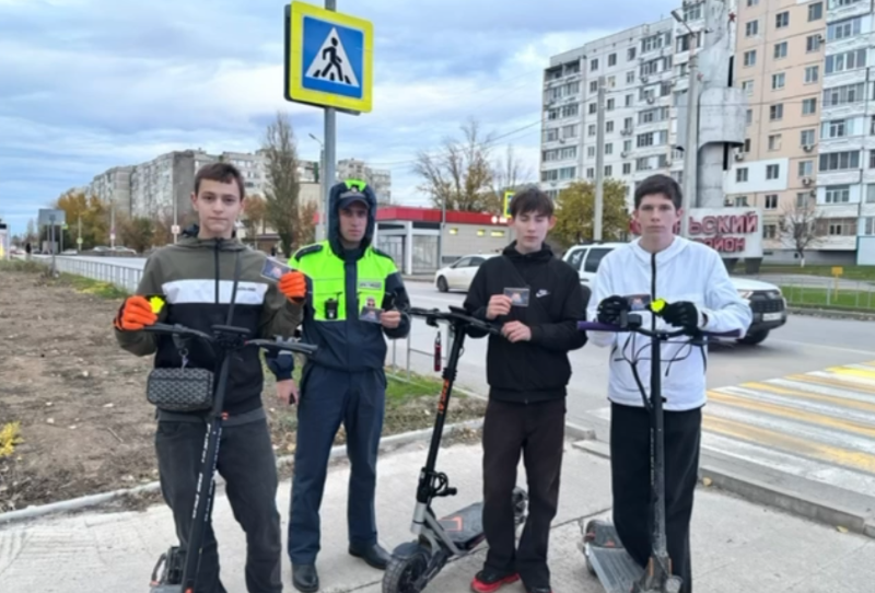 Инспекторы ДПС, старший лейтенант полиции Никита Курманов и младший лейтенант полиции Антон Святоха, совместно с Елизаветой Свинцовой провели разъяснительную работу с подростками, управляющими велосипедами, самокатами и мопедами на территории обслуживания «Волгодонское».