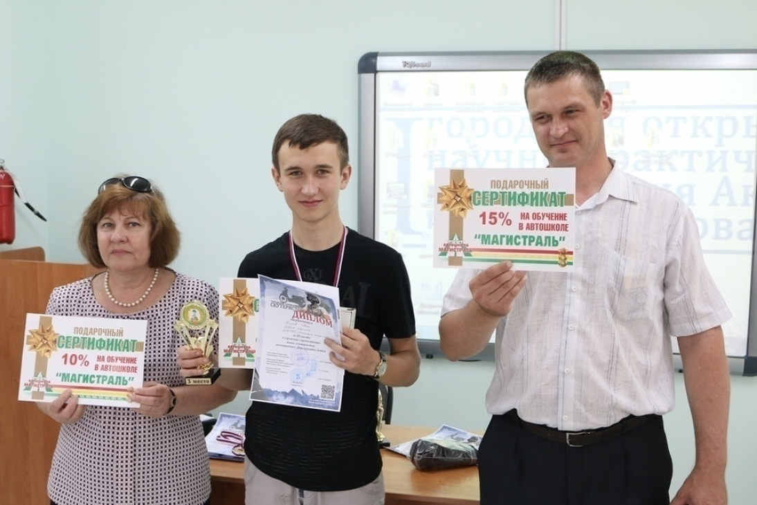 От постоянного спонсора и партнера соревнований – автошколы «Магистраль» победитель награжден солнцезащитными очками с МР3 плеером и сертификатом на 15% скидку на обучение в автошколе «Магистраль». За 2 и 3 места призеры награждены термосумкой и часами, а также 10% и 5% скидками (соответственно) на обучение.