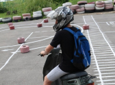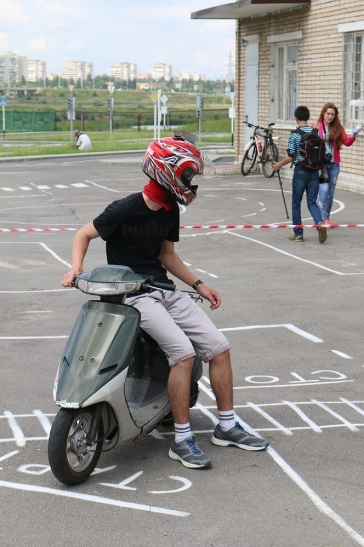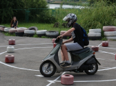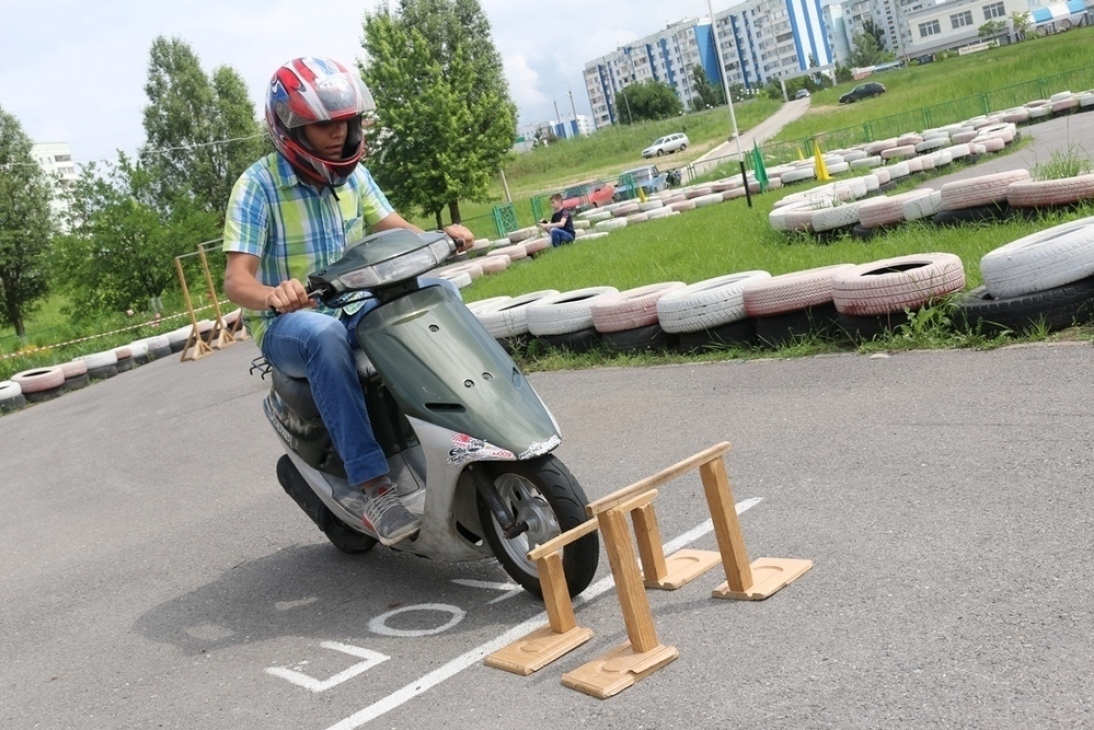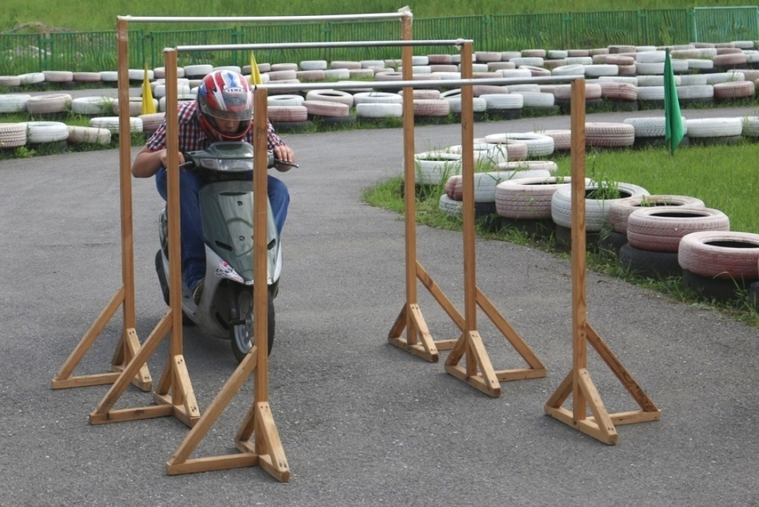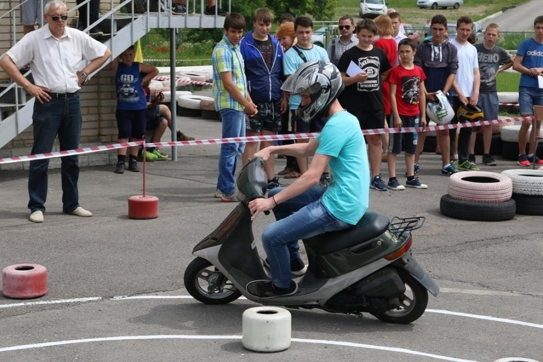 На теоретическом этапе «Знаток ПДД» участникам было предложено ответить на 10 вопросов по правилам дорожного движения. По итогам набранных баллов лучшим стал Седов Илья. На практический этап «Фигурное вождение» допускались участники, имеющие практические навыки вождения скутера. Участникам необходимо было за минимальное время, не допуская ошибок, преодолеть 5 конкурсных элементов: «Восьмерка», «Перенос предмета», «Змейка», «Проезд под перекладиной», «Торможение». По итогам набранных баллов и с учетом потраченного времени места распределены следующим образом лучшим стал Тузенков Александр.