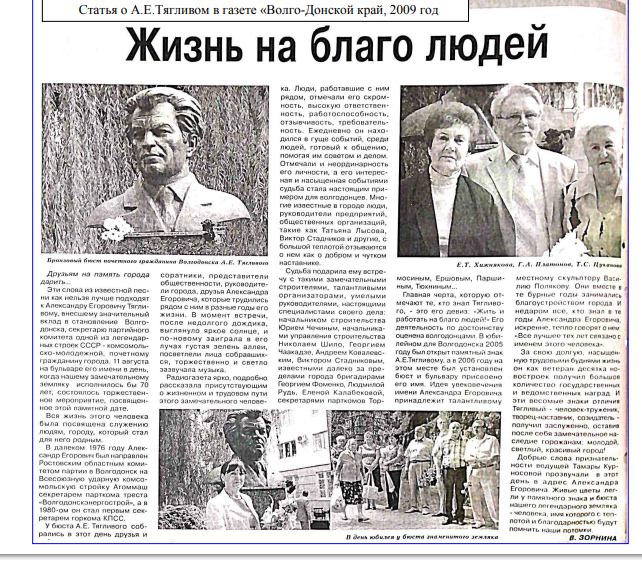 В Волгодонске сегодня вспоминают Александра Егоровича Тягливого, внесшего значительный вклад в становление и развитие города.