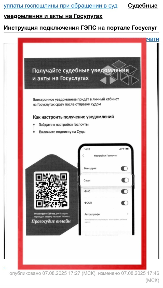 3. Выберите параметр «Суды» и активируйте получение электронных писем.