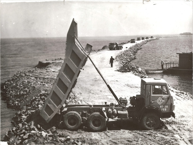 Отсыпка дамбы пруда-охладителя, начало 80-х годов. Фотография из фондов Волгодонского эколого-исторического музея.