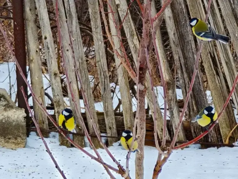 Волгодончанка прикормила целую стаю синиц-мозгоедов