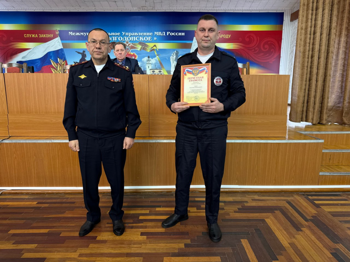 После возложения цветов в актовом зале управления Михаил Шабельник поздравил личный состав с наступающим праздником. Полковник полиции пожелал коллегам здоровья, благополучия и профессиональных успехов, отметив их добросовестную службу, твердость характера и верность долгу. В торжественной обстановке отличившимся сотрудникам были вручены почетные грамоты.