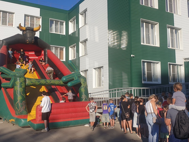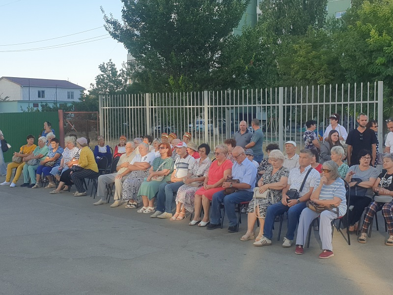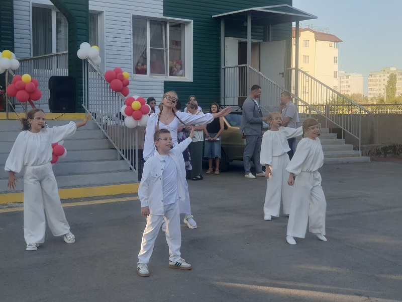 Вечером, 29 августа, во дворе филиала Детской театральной школы в микрорайоне В-9 было шумно, людно и весело. Здесь собрались десятки жителей микрорайона в честь большого двойного праздника — Дня города и начала нового учебного года.