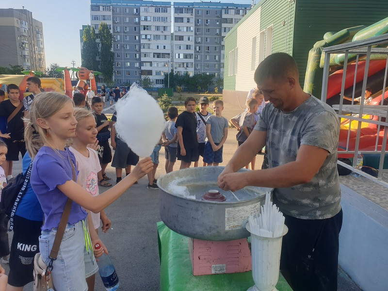 В округе №23 в Волгодонске чествовали ветеранов строительства и промышленности Волгодонска, а дети в это время веселились и ели сладкую вату.