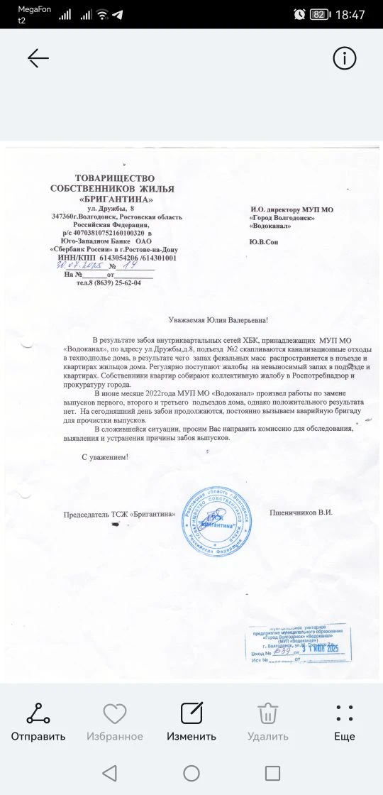 Волгодонец призвал ДСиГХ и Водоканал провести всесторонне обследование системы канализации в доме, чтобы найти решение этой зловонной проблемы.