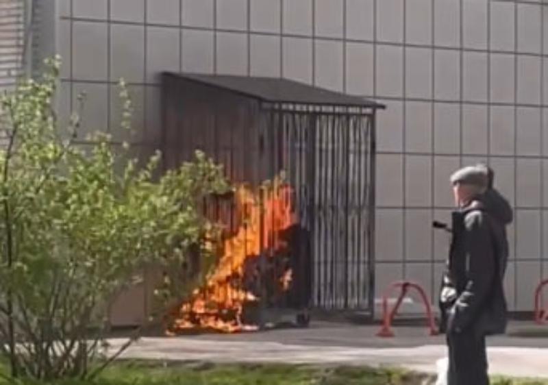 Мусорный контейнер, расположенный в непосредственной близости от жилого дома, оказался охвачен пламенем. Огонь быстро распространялся, превращая содержимое контейнера в пылающий очаг.