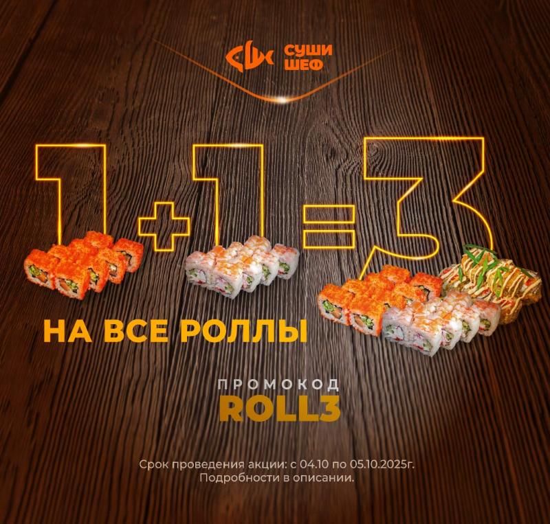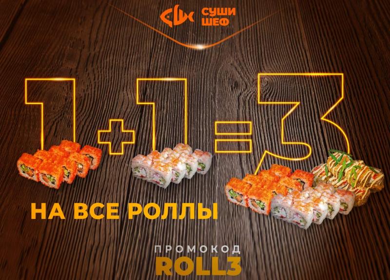 Закажите 3 ролла и получите самый дешевый, из выбранных, в подарок по промокоду ROLL3