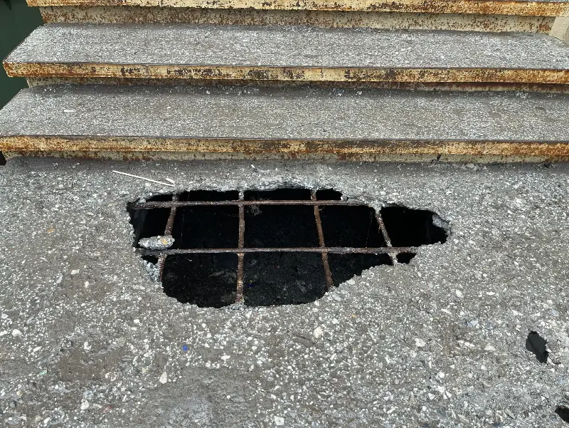 «Ждем гибели старушки или ребенка?»: перед высоткой на Ленина, 96 образовался провал со ржавой арматурой