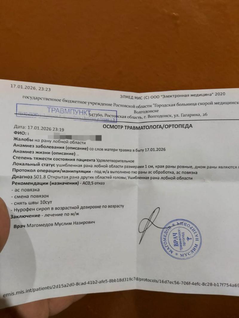 Как сообщила наша читательница, 17 января 2026 года, в условиях гололеда, ребенок поскользнулся и получил серьезную рану лба, ударившись о порог. Казалось бы, в такой ситуации необходимо немедленное обращение за квалифицированной хирургической помощью. Однако, вызов скорой помощи обернулся полным разочарованием.