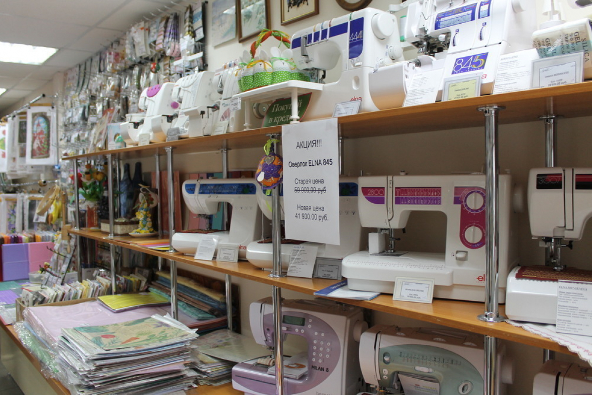 По ее словам, только здесь можно найти любые детали для шитья нужного цвета, размера и вида. Действительно, в «Швейных машинах» любительницы рукоделия найдут любые товары – от швейных машин проверенных брендов до ниток с иголками, бисера и пуговиц.