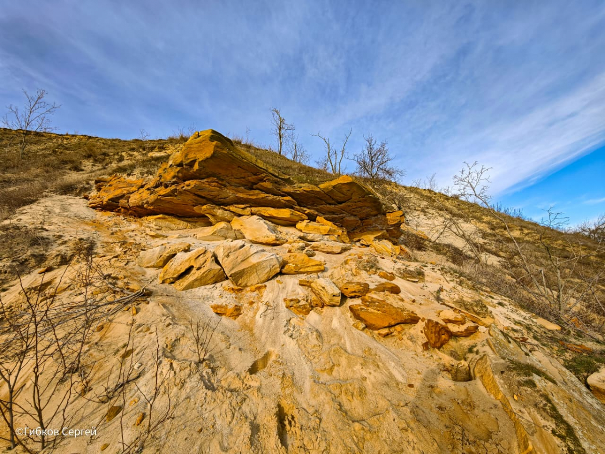 Ушедшая вода обнажила широкий берег, усыпанный чистым крупным песком и причудливыми песчаниками, создавая красивые пейзажи. Это место, словно магнит, притягивает все больше людей, желающих сделать памятные фотографии и насладиться красотой донской природы.